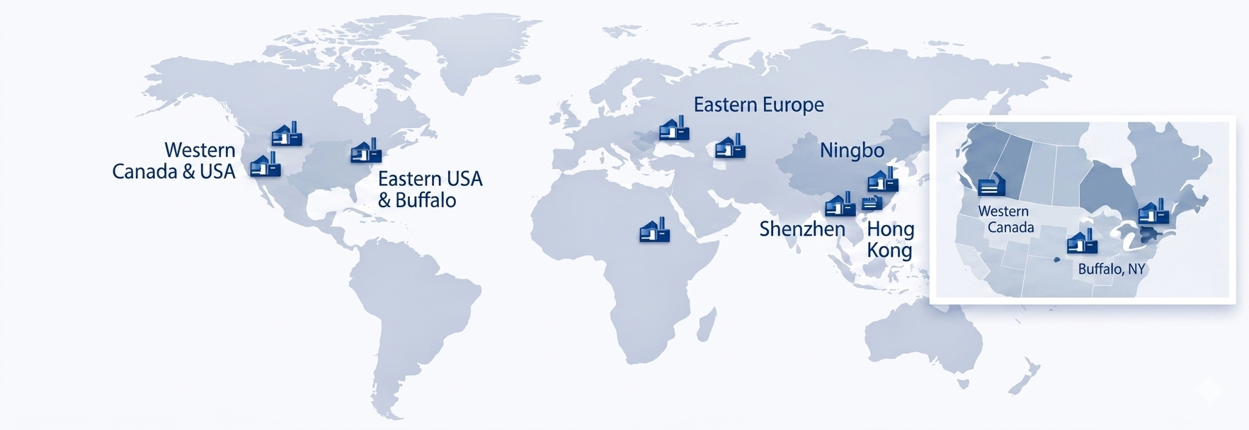 Warehousing and domestic replenishment in Eastern Canada, Western Canada, and Buffalo, NY.